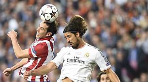 Hiç açık vermeyen takım yapısıyla La Liga şampiyonluğunu alan ve Şampiyonlar Ligi finaline kadar gelen Atletico yine bir kafa golüyle ilk yarıyı önde tamamladı. 37. dakikada ceza sahasına yapılan ortada Casillas'ın inanılmaz bir şekilde boşa çıkmasının ardından Godin'in kafa vuruşu ağlara gitti ve Atletico 1-0öne geçti. Uruguaylı yıldız, Barcelona maçının arından çok önemli bir gol daha atmış oldu. Ayrıca Atletico son 9 golünden 5'ni de kafayla atmış oldu böylece...