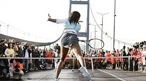 ABD'li yıldız raket, yarın saat 13.00'te başlayacak olan basın toplantısının ardından saat 15:00'te İpek Soylu ve  Çağla Büyükakçay ile Boğaziçi Köprüsü'nde gösteri maçı yapacak. İki kıta arasında tenis oynayacak olan Venus Williams'a 10 yıl önce İpek Şenoğlu eşlik etmişti.