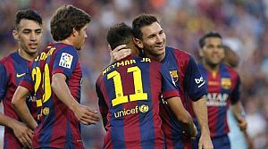 Barcelona'nın gollerini, 26, 45 ve 66. dakikada Neymar, 43. dakikada Rakitic ve 62 ve 82. dakikalarda Messi kaydetti.