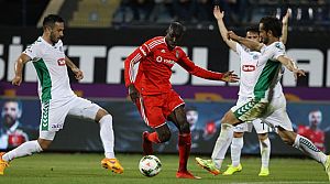 42. dakikada Necip Uysal'ın sağ taraftan yaptığı ortada arka direkte topla buluşan Olcay Şahan'ın vuruşunda, meşin yuvarlak üstten auta çıktı.