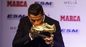 Real Madrid Kulübü Başkanı Florentino Perez, Kurumsal İlişkiler Sorumlusu Emilio Butragueno ve futbolculardan İker Casillas, Sergio Ramos ve Gareth Bale'i de tören salonunda görünce "Bu kadar çok kişi beklemiyordum" diyen Ronaldo, "Takım arkadaşlarıma teşekkür etmek istiyorum çünkü onların yardımı olmadan altın ayakkabıyı kazanamazdım. Ayrıca aileme, taraftarlara ve bana dünyanın en iyi takımında oynama şansı verdiği için kulübüme teşekkür ediyorum" diye konuştu. Futbolcu olarak aldığı bireysel ödüllerden memnunluk duyduğunu saklamayan Portekizli futbolcu, şunları söyledi: